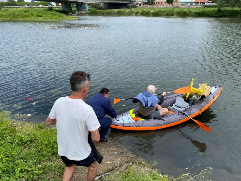 Докато доброволците почистваха северния бряг, председателят на сдружението Веселин Костов и Стоян Михайлов влязоха с каяк във водата, за да извадят потънали отпадъци – велосипеди, тротинетки и други. Под моста на УХТ на южния бряг обаче те попаднаха на зловеща находка – голямо количество цветя, носени от течението, и тяло, което в първия момент помислили за гума. При доближаване с греблото, осъзнали, че това е труп на удавен мъж.
